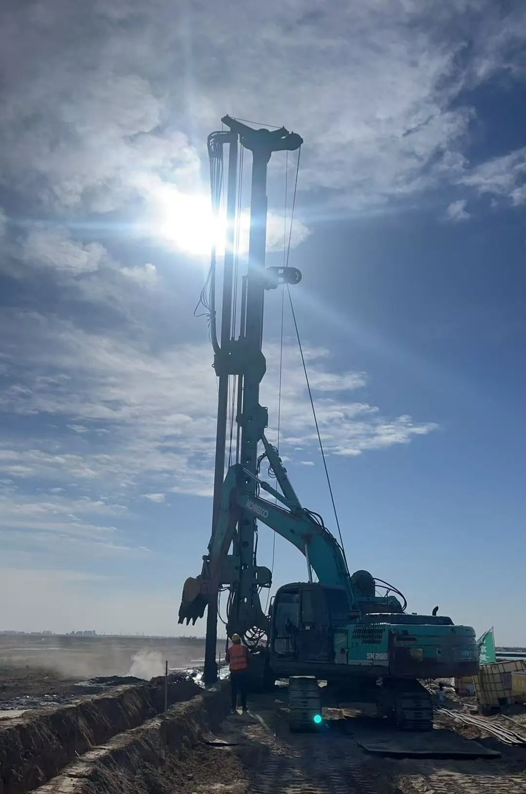 在山東省重點(diǎn)水利項(xiàng)目廣北水庫(kù)除險(xiǎn)加固工程與引調(diào)水工程建設(shè)現(xiàn)場(chǎng),上海金泰工程機(jī)械有限公司自主研發(fā)的多臺(tái)CSM雙輪攪設(shè)備正以多機(jī)協(xié)同的施工狀態(tài)高效的推進(jìn)著防滲墻施工。繼“黃水東調(diào)”應(yīng)急工程(東營(yíng)段)沉沙及調(diào)蓄工程后,金泰CSM工法鉆機(jī)再次以技術(shù)實(shí)力書(shū)寫(xiě)水利建設(shè)新篇章,為山東水資源保障注入強(qiáng)勁動(dòng)力。